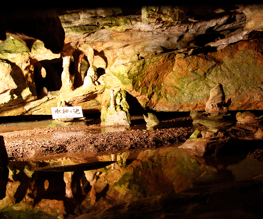 石灰岩が水の力で侵食されてできた天然の鍾乳洞には日本で唯一という「水平天井」が続き、数多くの奇岩も見られます。1年を通して15℃前後なので、真夏でもエアコンが効いた部屋よりも涼しい気持ちの良さ。